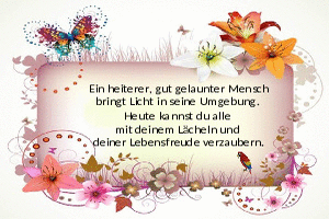 | Mit Lächeln fängt Frieden an Bild (621.53 KB) 1Herziges → Sprüche → Lebensweisheiten | Herziges → Sprüche → Lebensweisheiten | 05.01.-08:06 | Fossy | |