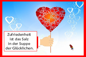 | Liebesgedanken 16 Ernst Ferstl Powerpoint (851.5 KB) 7Herziges → Sprüche → Sprüche zur Liebe "Zufriedenheit ist das Salz in der Suppe der Glücklichen." Einfach mal mit dem zufrieden sein, was man hat. Das geht... | Herziges → Sprüche → Sprüche zur Liebe | 14.11.25-17:40 | Sirene | |