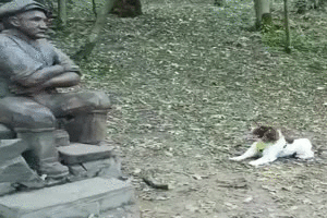 Der Hund hat wohl Mitleid mit seinem Frauchen, weil sie so hart trainieren muss :-)