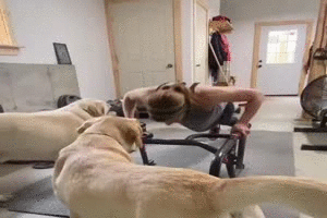 Das ist doch ein lieber Hund. Wahrscheinlich hat er Mitleid mit dem Frauchen, weil sie so hart trainiert.