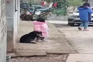 Wenn das kein liebes Kind ist. Es hält dem Hund extra die Ohren zu, damit er den Lärm nicht ertragen muss.