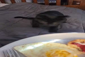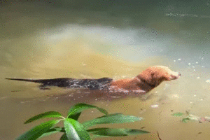 Katze geht mit den Entenküken ans Wasser