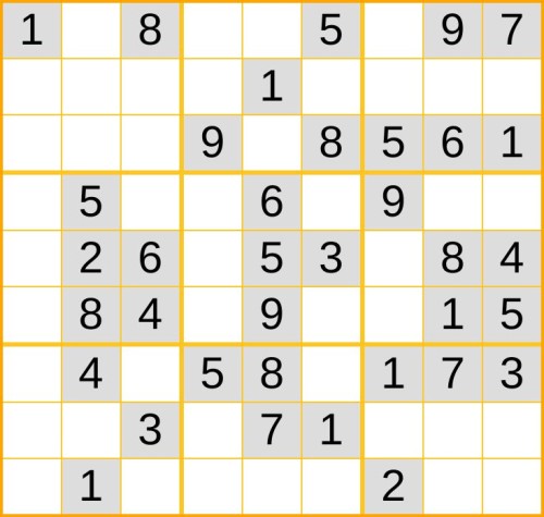 Das Ziel von Sudoku ist es, ein 9x9-Raster so mit Zahlen zu füllen, dass jede Reihe, Spalte und jedes 3x3-Quadrat alle Ziffern zwischen 1 und 9 enthält.