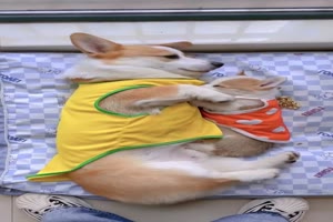 Wie liebevoll die Corgimutter mit ihrem Welpen umgeht. Total goldig.