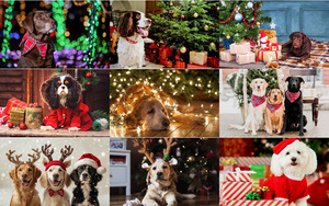 Die Hunde sehen wirklich süß aus in ihren weihnachtlichen Outfits.