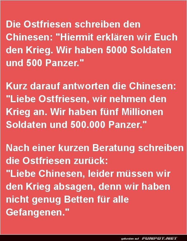 Ostfriesen planen unrealistische Kriegspläne