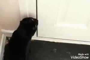 Man könnte glatt den Eindruck haben, dass diese Katze mit der Katzenklappe auf Kriegsfuß steht!