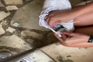 Kaum zu glauben wie lange es dauert bis sie merkt, dass ihre Haare brennen.