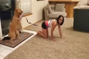 Der Hund ist doch klasse. Schaltet einfach mal den Fernseher ab und guckt dann ganz fordernd ;-)