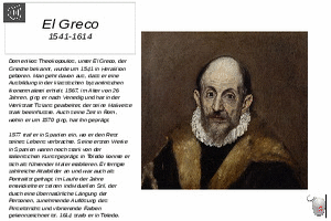 Da ich selbst einmal gezeichnet-gemalt habe, habe ich mit 50 ausgewählten Künstler, die in den letzten 5 Jahrhunderten einzigartige Kunstwerke erschufen, eine PowerPoint-Serie erstellt. (Nr. 11, El Greco, 1541-1614)