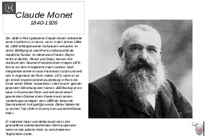 Da ich selbst einmal gezeichnet-gemalt habe, habe ich mit 50 ausgewählten Künstler, die in den letzten 5 Jahrhunderten einzigartige Kunstwerke erschufen, eine PowerPoint-Serie erstellt. (Nr. 30, Claude Monet, 1840-1926)