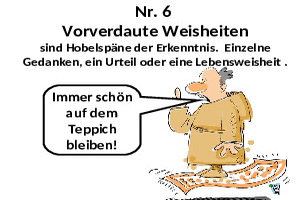 Vorverdaute Weisheiten sind Hobelspäne der Erkenntnis. Einzelne Gedanken, ein Urteil oder eine Lebensweisheit. Die solltest du dir auf keinen Fall entgehen lassen ;-)