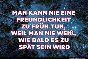 | Man kann nie eine Freundlichkeit Bild (407.36 KB) von Valentina am 20. März 2026 um 21:17 Uhr Herziges → Sprüche | Herziges → Sprüche | 20.03.-21:17 | Valentina | ||