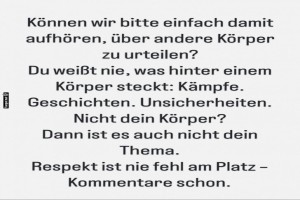 | Aufhören, über andere Körper zu urteilen Bild (119.91 KB) 5Herziges → Nachdenkliches | Herziges → Nachdenkliches | 16.06.-18:04 | Pascal-1968 | |