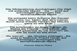 | Weihnachtswünsche Bild (348.78 KB) 18Herziges → Gedichte | Herziges → Gedichte | 21.12.24-11:26 | Sirene | |