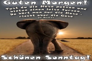 | Ein Elefant auf dem Weg zum Sonntagshumor Bild (419 KB) 2Herziges → guten-Morgen-Bilder → Sonntag Guten Morgen | Herziges → guten-Morgen-Bilder → Sonntag | 26.01.-22:31 | ||