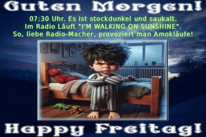 | Morgens um 7, wenn Radio den Spaß ruiniert! Bild (514.76 KB) 2Herziges → guten-Morgen-Bilder → Freitag Guten Morgen | Herziges → guten-Morgen-Bilder → Freitag | 26.01.-22:31 | ||