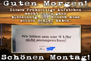 | Montagsmodus aktiviert: Vor 9 Uhr schweigen! Bild (461.68 KB) 2Herziges → guten-Morgen-Bilder → Montag Guten Morgen | Herziges → guten-Morgen-Bilder → Montag | 26.01.-22:31 | ||