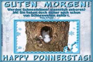 | Schneemann trifft warmherzigen Freund Bild (494.67 KB) 2Herziges → guten-Morgen-Bilder → Montag Guten Morgen | Herziges → guten-Morgen-Bilder → Montag | 26.01.-22:30 | ||