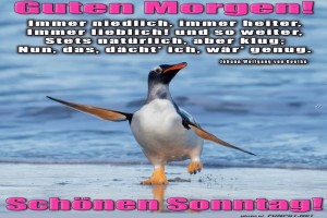 | Fröhlicher Pinguin am Strand zum Sonntag Bild (442.55 KB) 3Herziges → guten-Morgen-Bilder → Sonntag und witzige Bilder Guten Morgen | Herziges → guten-Morgen-Bilder → Sonntag und witzige Bilder | 25.04.-23:07 | ||