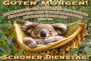 | Entspannter Koala begru?ßt den Dienstagmorgen Bild (704.56 KB) 1Herziges → guten-Morgen-Bilder → Dienstag Guten Morgen | Herziges → guten-Morgen-Bilder → Dienstag | 18.06.-22:50 | ||