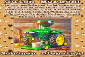 | Dienstag Bild (522.56 KB) 4Herziges → guten-Morgen-Bilder → Dienstag Guten Morgen | Herziges → guten-Morgen-Bilder → Dienstag | 28.10.23-22:03 | Justin | |