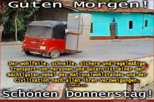 | Kreativer Transport am Donnerstag Bild (613.15 KB) 1Herziges → guten-Morgen-Bilder → Donnerstag Guten Morgen | Herziges → guten-Morgen-Bilder → Donnerstag | 31.03.-18:17 | ||