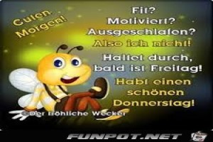 | Guten Morgen Donnerstag ich hoffe du hast gut geschlafen Bild (74.13 KB) 3Herziges → guten-Morgen-Bilder → Donnerstag und ich wünsche dir... | Herziges → guten-Morgen-Bilder → Donnerstag und ich wünsche dir... | 15.02.23-11:55 | Floh | |