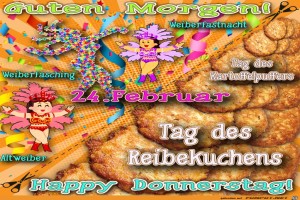 | Tag Des Reibekuchens / Altweiber / Weiberfastnacht Bild (896.37 KB) Herziges → guten-Morgen-Bilder → Donnerstag Guten Morgen | Herziges → guten-Morgen-Bilder → Donnerstag | 03.03.22-19:21 | |||