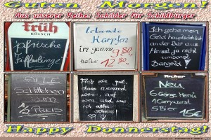 | Donnerstag Bild (91.89 KB) 6Herziges → guten-Morgen-Bilder → Donnerstag | Herziges → guten-Morgen-Bilder → Donnerstag | 18.08.22-11:49 | Keule56 | |