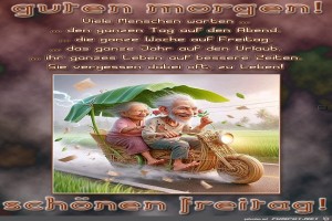 | Freitag Bild (1.52 MB) 3Herziges → guten-Morgen-Bilder → Freitag auf ins Wochenende | Herziges → guten-Morgen-Bilder → Freitag | 03.05.24-08:28 | Artist | |