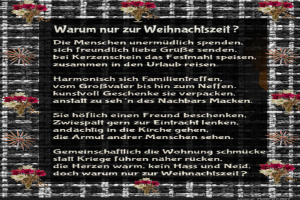 | warum nur zur weihnachtszeit Bild (2.78 MB) Herziges → Nachdenkliches | Herziges → Nachdenkliches | 31.12.25-16:28 | |||