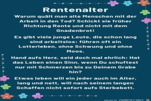 | Das Rentenalter Bild (128 KB) 6Herziges → Nachdenkliches | Herziges → Nachdenkliches | 20.08.23-17:13 | Julia | |
