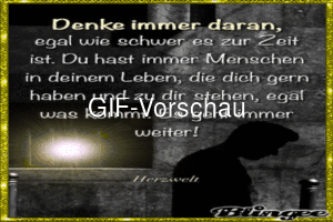 | Denke immer daran Bild (158.93 KB) 1Herziges → Nachdenkliches | Herziges → Nachdenkliches | 25.04.21-08:43 | Floh | |