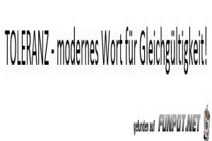 | Toleranz ist Gleichgueltigkeit Bild (14.73 KB) 1Herziges → Nachdenkliches Heute sagt man zu Gleichgültigkeit anderen gegenüber "Toleranz". | Herziges → Nachdenkliches | 26.02.21-16:39 | Oliver | |