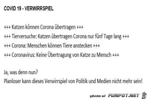 | Verwirrspiel Politik und Medien um Corona Bild (25.15 KB) 2Herziges → Nachdenkliches Corona | Herziges → Nachdenkliches | 25.02.21-20:12 | Susan | |
