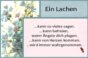 | Ein Lachen Powerpoint (1.5 MB) 9Herziges Ein Lachen kann so vieles bewirken. Deshalb verschenke es so oft wie möglich. | Herziges | 30.06.-09:33 | Sirene | |