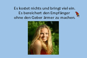 | Ein Lächeln Powerpoint (749 KB) 8Herziges Jedes Lächeln bereichtert den Menschen, der es empfängt und macht den Geber nicht ärmer. Eine ganz tolle Präsentation zum Thema Lächeln. | Herziges | 28.07.-19:57 | Sirene | |