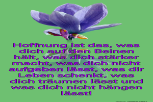 | hoffnung ist das, was dich Bild (611.74 KB) Herziges → Sprüche | Herziges → Sprüche | 04.09.-21:07 | |||