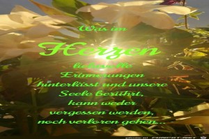 | Was im Herzen liebevolle Erinnerungen hinterlässt Bild (79.65 KB) 9Herziges → Sprüche | Herziges → Sprüche | 17.03.22-10:00 | ||