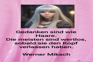| Gedanken und Haare: Ein Zitat von Werner Miksch Bild (937.5 KB) 1Herziges → Sprüche | Herziges → Sprüche | 21.06.-17:54 | ||