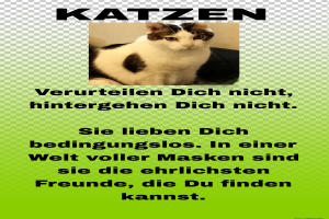 | Katzen: Ehrliche Freunde in jeder Welt Bild (3.43 MB) 3Herziges → Sprüche | Herziges → Sprüche | 29.01.-18:40 | ||