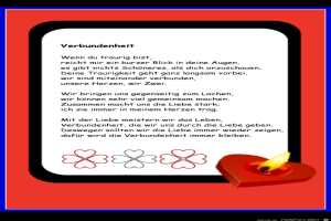 | Verbundenheit Bild (461.73 KB) 1Herziges → Sprüche → Sprüche zur Liebe | Herziges → Sprüche → Sprüche zur Liebe | 06.01.22-03:09 | GedichteNS | |