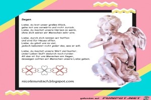 | Segen Bild (65.82 KB) 2Herziges → Sprüche → Sprüche zur Liebe | Herziges → Sprüche → Sprüche zur Liebe | 06.01.22-03:11 | GedichteNS | |