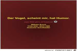 | Der Vogel, scheint mir, hat Humor Bild (20.18 KB) 1Herziges → Zitate | Herziges → Zitate | 21.01.23-15:42 | Fossy | |