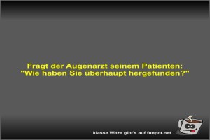 | Fragt der Augenarzt seinem Patienten Bild (18.38 KB) von Fossy am 25. Januar 2026 um 09:53 Uhr Lustiges → klasse Sprüche und Witze | Lustiges → klasse Sprüche und Witze | heute-09:53 | Fossy | ||