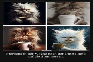 ![]() ![]() ![]() | Katzen vs. Sommerzeit: Der Morgenblick Bild (193.2 KB) von Lennox44 am 03. April 2026 um 12:15 Uhr Lustiges → witzige Bilder und lustige Katzen | Lustiges → witzige Bilder und lustige Katzen | heute-12:15 | Lennox44 | ||