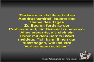 | 'Sarkasmus als literarisches Ausdrucksmittel' lautete das... Bild (42.08 KB) von Fossy am 10. Januar 2026 um 17:29 Uhr Lustiges → klasse Sprüche und Witze | Lustiges → klasse Sprüche und Witze | heute-17:29 | Fossy | ||