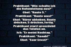 1 | ![]() ![]() ![]() | Wenn Praktikanten auf 'Raute' treffen Bild (146.71 KB) 1Lustiges → klasse Sprüche und Witze | Lustiges → klasse Sprüche und Witze | 12.03.-20:59 | ||
