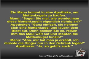| Ein Mann kommt in eine Apotheke Bild (56.25 KB) von Fossy am 06. April 2026 um 16:17 Uhr Lustiges → klasse Sprüche und Witze | Lustiges → klasse Sprüche und Witze | 06.04.-16:17 | Fossy | ||